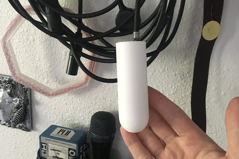 The materials are available individually or as a kit from JLI Electronics and the resin can be obtained from online sources or many brick-and-mortar art supply stores, bringing the cost of each Gladys Hydrophone to around $100. The assembly itself was very straightforward: I soldered wires from the inner and outer faces of the cylinder to the preamp board as well as the XLR connections and a grounding wire, suspended them inside a 3D printed mold (made using the 3D model generously provided for free by Jules), mixed and poured the resin. The whole process took maybe an hour from wiring to de-molding, and the results are leaps and bounds above any of my previous hydrophone iterations.